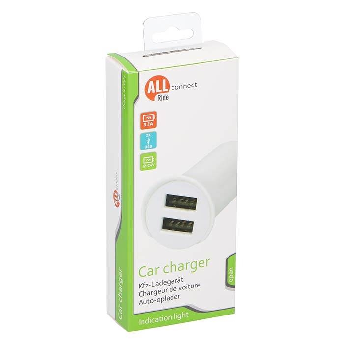 Universal USB stik med 2 udgange på max. 3.1A total.Den er uundværlig når man er flere i bilen, som skal have opladet telefonen, eller flere USB enheder samtidig. Indgangene har indikatorlys så det er nemt at se stikket, selvom det er mørkt i bilen.