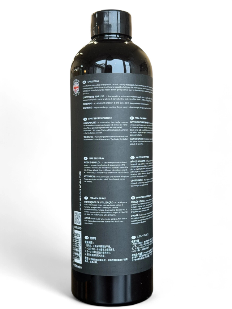 Denne avancerede, næste generations keramiske coating er udviklet til professionel brug og kan påføres lige så hurtigt som en almindelig sprayvoks. Den SiO₂-baserede formel binder sig kemisk til overfladen og danner et glat, blankt og stærkt vandafvisende lag, som beskytter lakken og giver intens glans i op til tre måneder. Det er den ideelle løsning for både professionelle detailere, entusiaster og dem, der ønsker hurtig og effektiv beskyttelse før udstillinger eller events. Produktet kan bruges som et selvstændigt beskyttelseslag eller til at vedligeholde og forlænge effekten af tidligere keramiske behandlinger.