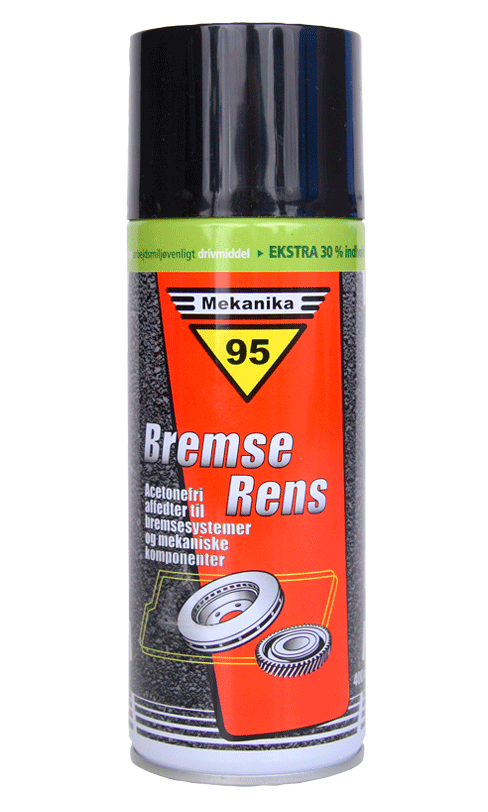 Mekanika 95 BremseRens er en arbejdsmiljøvenlig universel affedter til effektiv afrensning af bremsevæske, støv, olie, fedt, tjære, voks og silicone.BremseRens anvendes til afrensning og affedtning af alle typer bremsesystemer, mekaniske komponenter og kæder.