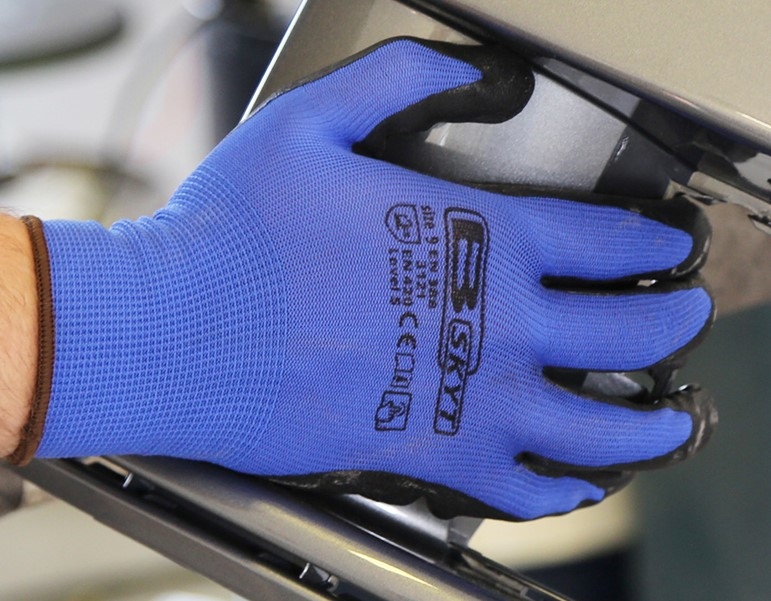 Handskens fingre og håndflade er behandlet med en smidug PU/nitrilbehandling med en dottet overflade der giver et ekstra godt greb.