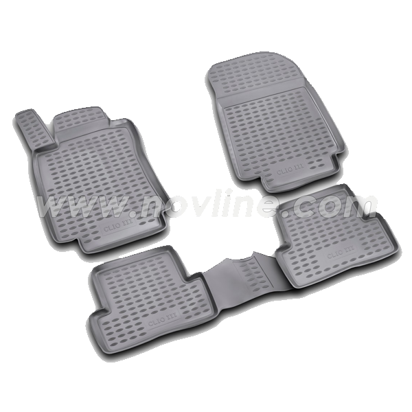 En Renault Clio III 2005 fortjener formstøbte gummimåtter fra NovLine, som er en både elegant og meget praktisk løsning. Specielt i vinterhalvåret er der risiko for mudder og snavs på fodtøjet. Gummimåtterne kan bruges permanent - og en god tommelfingerregel vil være, at skifte fra de almindelige måtter til gummimåtter, samtidig med at du skifter fra sommer- til vinterdæk.
