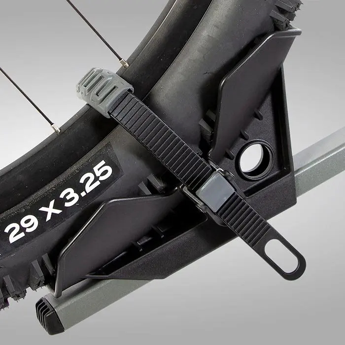 Cykelholderen er velegnet til både voksne cykler og børnecykler og understøtter stelrør op til 75 mm i diameter. Gummipuder beskytter kulstoframmer og sikrer, at ingen pres lægges på rørene. Cyklerne fastgøres med robuste stropper og polstrede hjulremme, der passer til dæk op til 3,25".