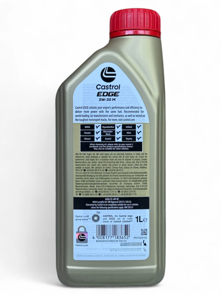Castrol EDGE 5W30 M kan anvendes til benzin- og dieselmotorer, hvor producenten anbefaler en 5W-30 motorolie med specifikationen