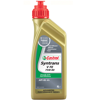 brændstoføkonomi. Castrol Syntrans V FE 75W80 egner sig til transaksler, manuelle gearkasser, fordelergearkasser og slutdrev, hvor API GL4 smøremidler er specificeret. Anbefales af Castrol til alle 5- og 6-trins manuelle gearkasser fra Volkswagen, Audi, Seat og Skoda.