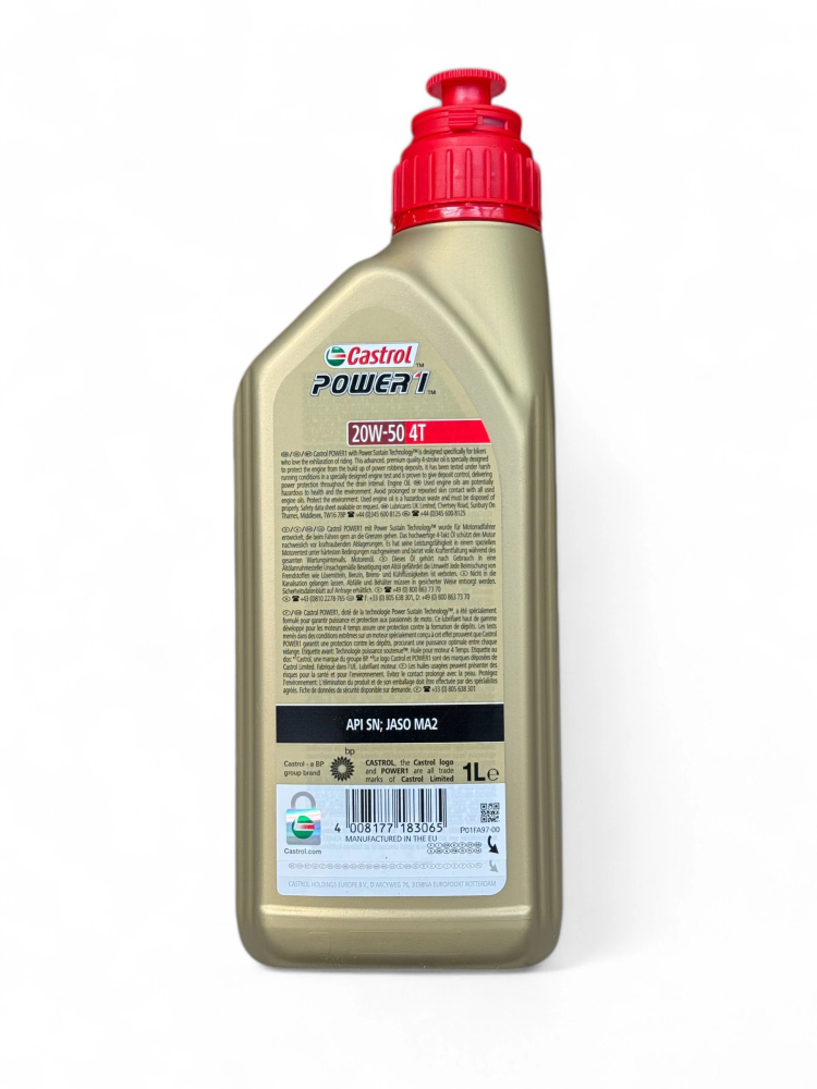 Castrol Power 1 4T 20W50 er en avanceret, førsteklasses motorolie udviklet til den nyeste generation af 4-takts motorcykelmotorer.