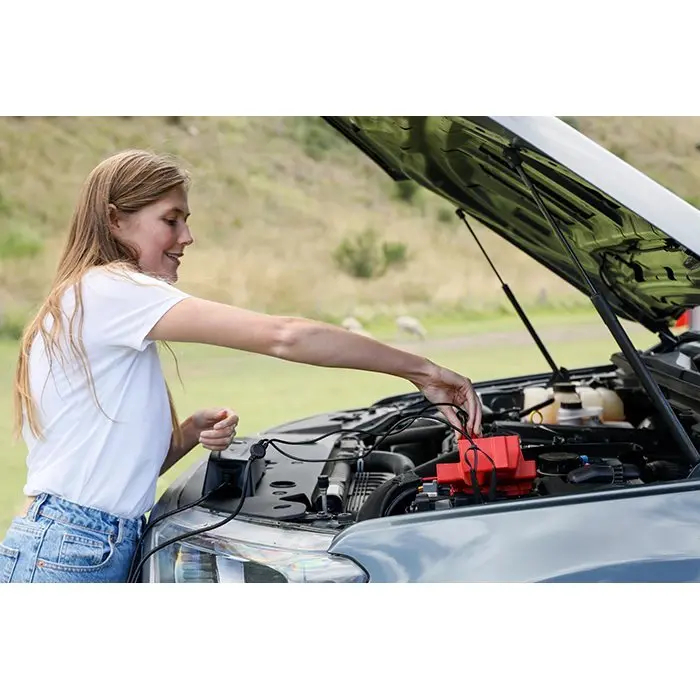CS FREE er en 4-i-1 løsning: adaptiv booster, batterioplader, powerbank og vedligeholdelseslader. Den analyserer automatisk et fladt batteri og kan starte din bil igen på under 15 minutter. Den indbyggede powerbank har både USB-C og USB-A udgange, så du også kan oplade laptops, smartphones og tablets.