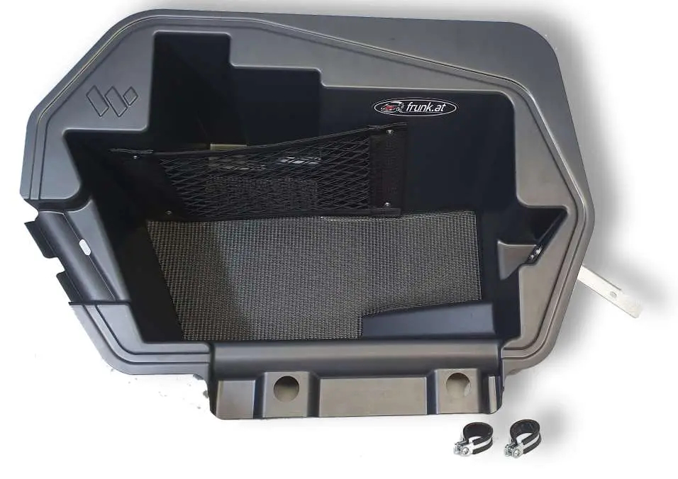 Frunken er designet med fokus på funktionalitet, kvalitet og pasform. Den udnytter pladsen effektivt, uden at kræve permanente ændringer på bilen. Den medfølgende skridsikre måtte holder indholdet stabilt under kørsel, mens opbevaringsnettet sørger for, at mindre genstande ligger organiseret og sikkert.