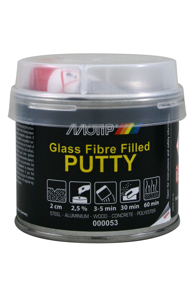 Denne glasfiber 2-komponent spartelmasse med et særlig flydestof og kan udfylde huller på op til 2 cm i overflader af stål, aluminium, træ, beton og polyester. Denne fiber spartelmasse er let at slibe, har en fremragende flyde egenskab og kan overlakeres. Den kan modstå vrid og træk og er modstandsdygtig for kemikalier og vejrpåvirkninger.