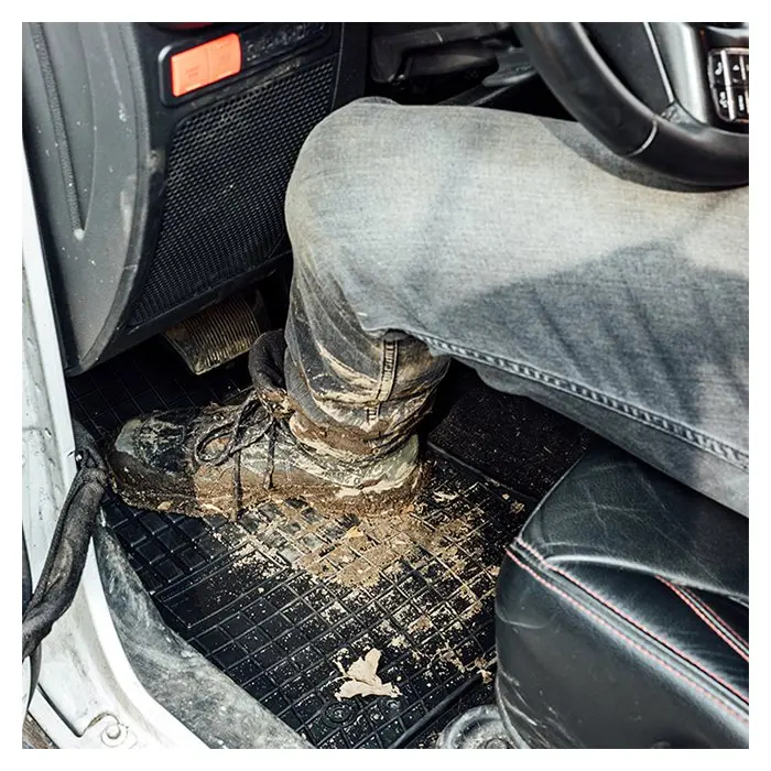 Måtterne er fremstillet i fleksibel og slidstærk gummi med et funktionelt ternet mønster samt ekstra forstærkning under pedalerne for øget holdbarhed. Den 1,5 cm høje kant sikrer, at vand og snavs bliver på måtten og gør rengøringen hurtig og nem.