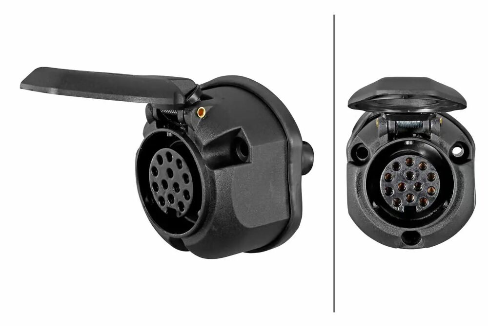 Skal du have udskiftet stikdåsen på bilen, er denne 13-polede model fra Hella det sikre valg. Stikdåsen er af den velkendte Jæger-type (ISO 11446) og udført i slagfast, vejrbestandig sort PVC, der sikrer lang levetid under danske vejforhold.Denne model leveres med løs indmad og praktisk skruetilslutning, hvilket gør monteringen hurtig og ukompliceret.