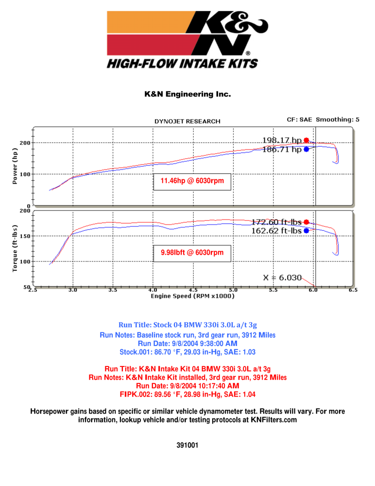 Ved at benytte et system med K&N Typhoon luftindtag fjernes de værste kilder til begrænsning af luftgennemstrømningen. K&N garanterer at du kan opnå højere motorydelse ved at erstatte de restriktive luftindtag som din bil er udstyret med fra fabrikken. K&N Sportluftfilter 57-1001 er testet med dynamometer for at bestemme den anslåede gevinst i hestekræfter.