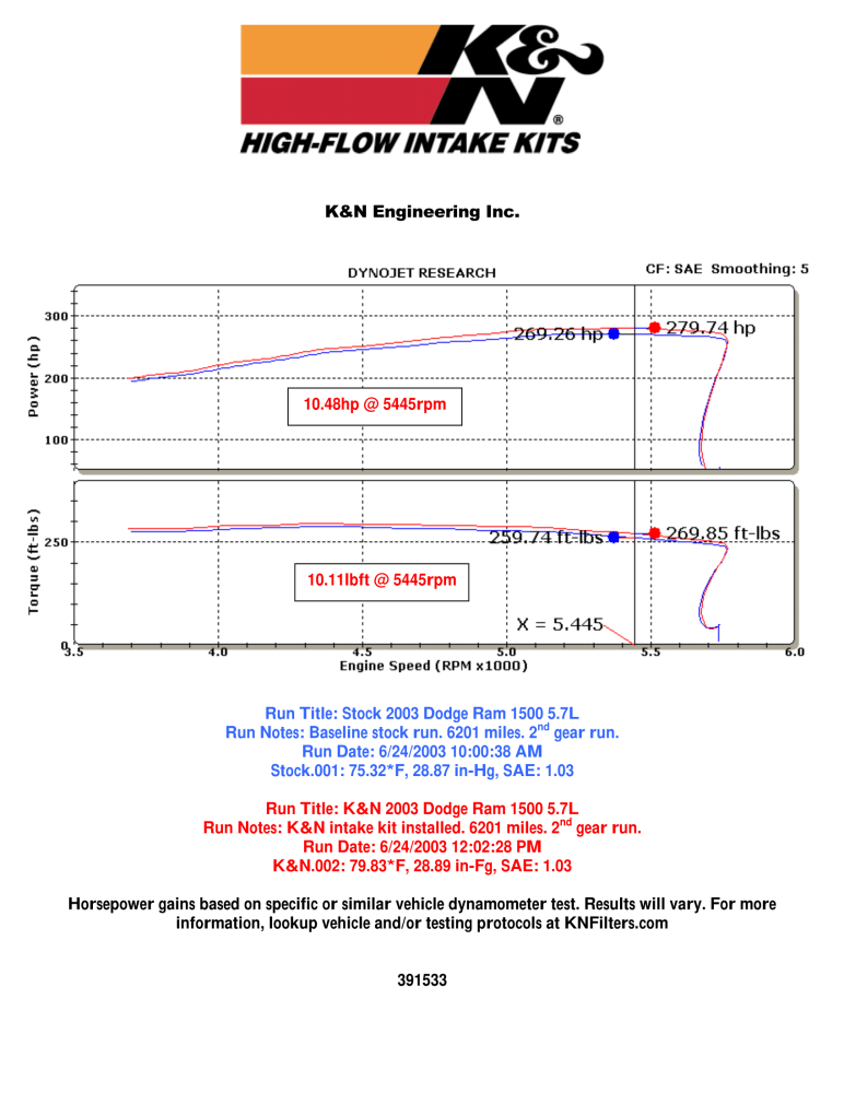 Ved at benytte et system med K&N Typhoon luftindtag fjernes de værste kilder til begrænsning af luftgennemstrømningen. K&N garanterer at du kan opnå højere motorydelse ved at erstatte de restriktive luftindtag som din bil er udstyret med fra fabrikken. K&N Sportluftfilter 57-1533 er testet med dynamometer for at bestemme den anslåede gevinst i hestekræfter.