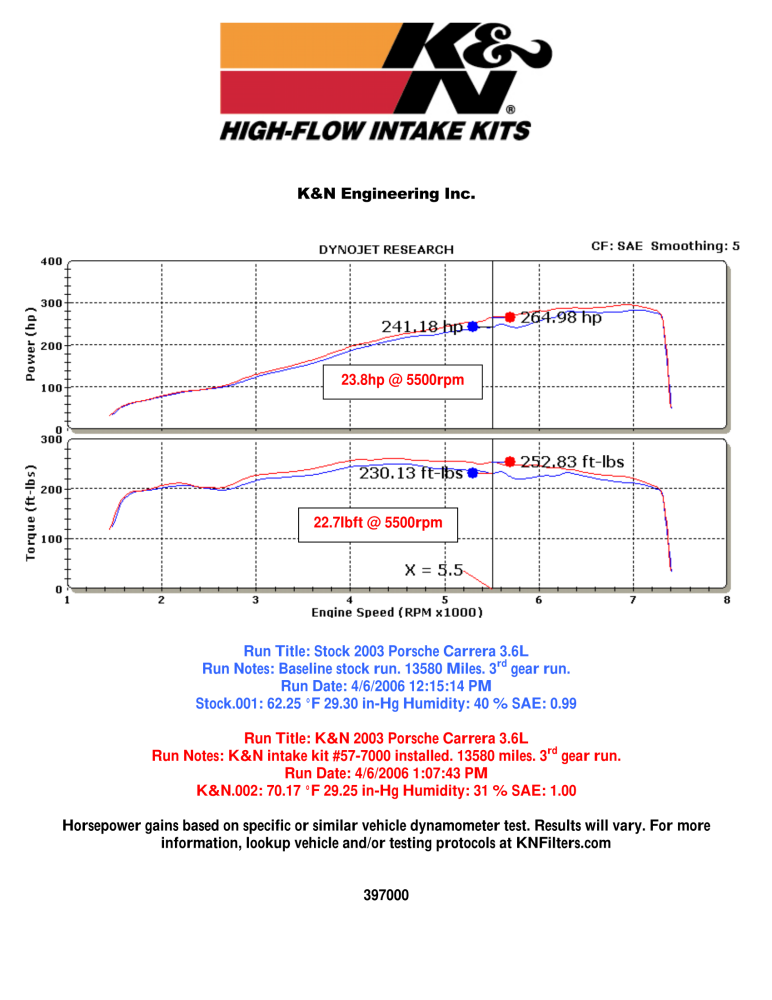 Ved at benytte et system med K&N Typhoon luftindtag fjernes de værste kilder til begrænsning af luftgennemstrømningen. K&N garanterer at du kan opnå højere motorydelse ved at erstatte de restriktive luftindtag som din bil er udstyret med fra fabrikken. K&N Sportluftfilter 57-7000 er testet med dynamometer for at bestemme den anslåede gevinst i hestekræfter.