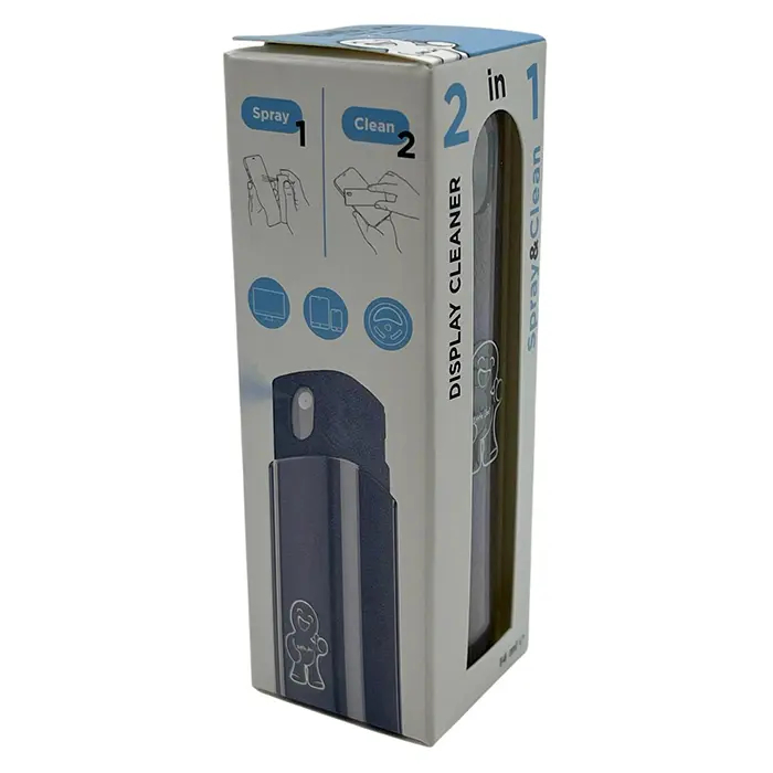 Dette effektive og stilrene produkt efterlader dine skrærme skinnende rene. Produkts kompakte størrelse gør det nemt at have liggende i bilen eller i tasken.Spray produktet direkte på skærmen og anvend mikrofibersiden til hurtigt og nemt at tørre produktet af.