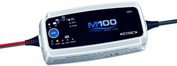 Ctek M100 er en fremragende marineoplader, der er alle pengene værd, og som giver en komplet batterihåndtering til små både med et 12 V-batteri, og som kan fungere som start- og servicebatteri. Ctek M100 er en fuldautomatisk 8-trins oplader, der leverer 7A og er ideel til batterier mellem 14-150Ah og op til 225 Ah til vedligeholdelsesopladning.Ctek M100 analyserer, om batteriet kan acceptere og bevare opladningen, den fjerner skadelige blysulfatkrystaller og giver en effektiv opladning og skifter automatisk til sikker vedligeholdelsesopladning, når batteriet er fuldt opladet.