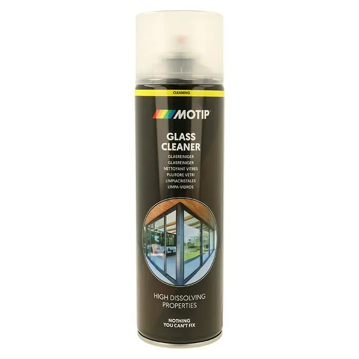 Effektiv spray til rengøring af forruder og spejle.Motip Glass Cleaner er en brugervenlig skumrens med høj affedtningsevne og stærke opløsende egenskaber – ideel til glasflader, der skal være helt rene og stribefri.