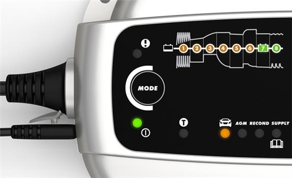 Den er også udstyret med en strømforsyningsmode, så batteriet kan kobles fra køretøjet uden at miste vigtige indstillinger. Det helt særlige display giver brugeren mulighed for at følge hele ladeprocessen.