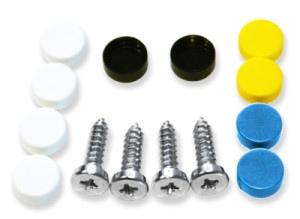 Skruesæt til fastgørelse af 2 nummerplader direkte på bilens kofangerOBS: Indeholder ikke selvskærende skruer men bolte + møtrikker