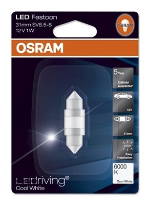Osram LED festoon pære 31 mm lang, 6000 Kelvin