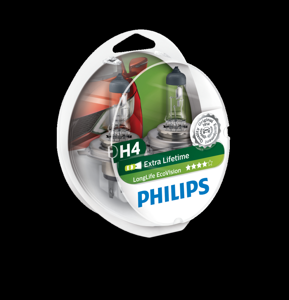 PHILIPS Longlife EcoVision H4 12V 60/55Watt - sætSe også hele vores sortiment af Philips H4 autopærer