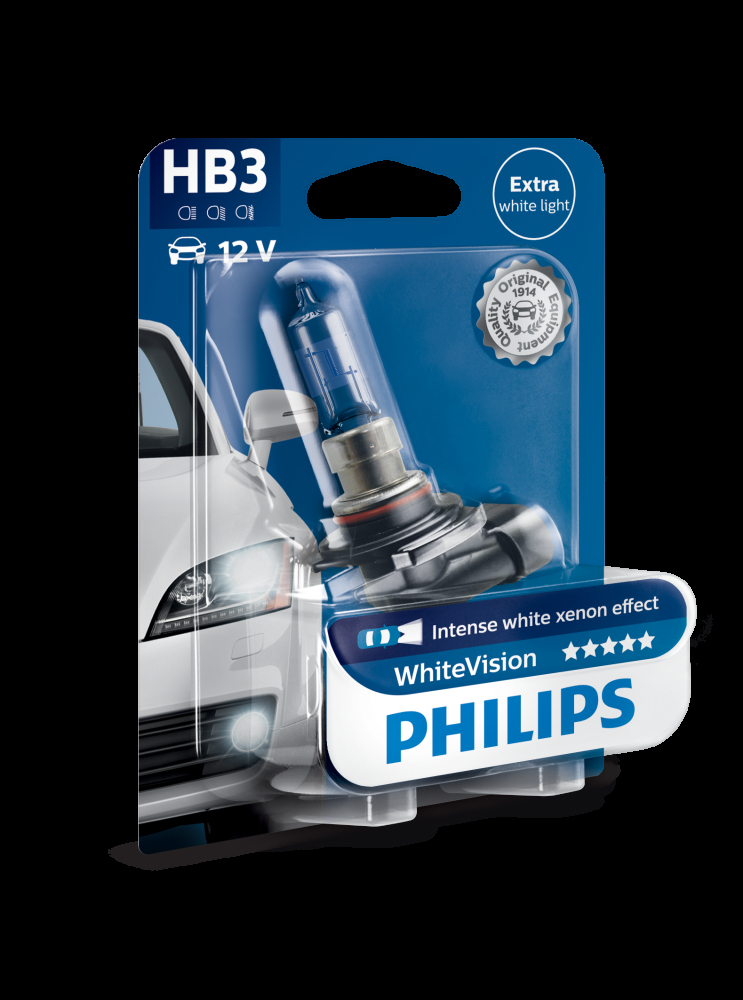 Philips WhiteVision HB3 klarer sig bedre end nogen blå autolyskilder på markedet og er det helt rigtige valg for chauffører, der ønsker at køre med stil, uden at det sætter sikkerheden i fare. Med en farvetemperatur for xenon-lyskilder og en elegant hvid hætte er WhiteVision den ultimative opgradering til dine forlygter. Philips' patenterede 3. generations belægningsteknologi er et revolutionerende mesterværk, der gør WhiteVision til den første lyskilde med et virkelig hvidt lys.