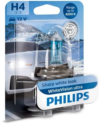 Det hvideste halogenlys som lovligt kan anvendes på vejene skabt af Philips med den nyeste belægningsformel på glasset som giver op til 4200 Kelvin samt op til 60% mere lys end standard halogen pærerPhilips Whitevision Ultra er skabt til bilisten som vil have halogenpærer med det klareste hvide lys - så det minder om xenon og LED