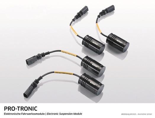 Dette fungerer ikke kun i kombination med Eibach-undervogne. Pro-Tronic kan også kombineres med en undervogn fra andre producenter, herunder OE sport-ophængssystemer.