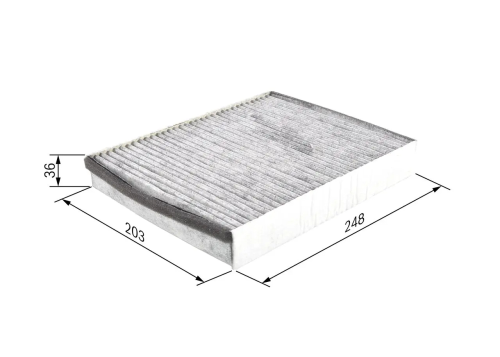 Principtegning af et Bosch R 2598 aktivkulfilter
