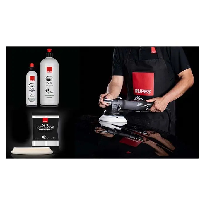 Uno Pure er et avanceret slibepoleringsmiddel med ultra-fin sammensætning, kompatibelt med alle typer poleringsværktøj – herunder roterende, random orbital og gear-drevet orbital. Produktet er udviklet og produceret internt af Rupes med fokus på den nyeste teknologi inden for slibemidler, hvilket sikrer maksimal optisk klarhed og refleksion, især ved brug sammen med Rupes BigFoot poleringssystem og tilhørende puder. Uno Pure er særligt velegnet til meget bløde eller matte laktyper og er ideel til at opnå en dyb, spejlblank finish, selv på mørke lakker. Uden fyldstoffer og med en formel, der er nem at arbejde med og let at tørre af, leverer Uno Pure en effektiv og behagelig brugeroplevelse. Dette gør produktet til en alsidig løsning, der passer til både professionelle detailere og entusiaster, der ønsker perfekte resultater.