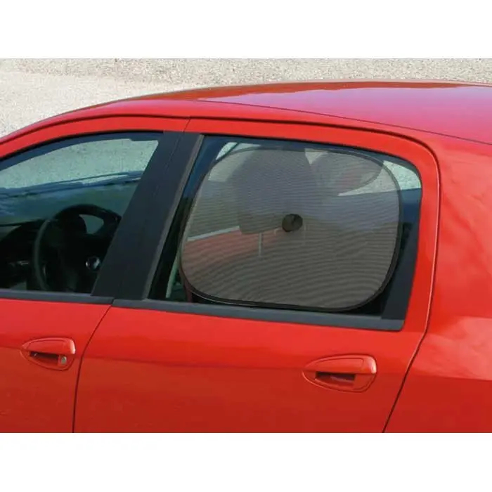 Praktisk sæt med to solgardiner, der passer til de fleste biler. Solgardinerne hjælper med at reducere varme og sollys i kabinen og beskytter passagerer og interiør mod direkte sol.