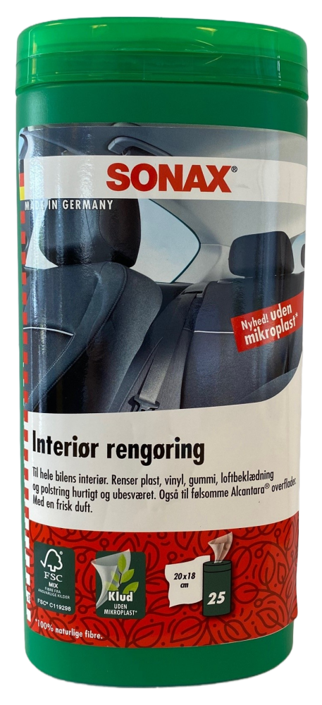 Sonax interiør renseservietter, er en nem og hurtig måde at fjerne snavs og pletter fra sæder, loftbeklædning, gulvtæpper m.m. Den praktiske beholder gør det nemt at opbevare den i bilen, båden, campingvognen eller der hjemme.