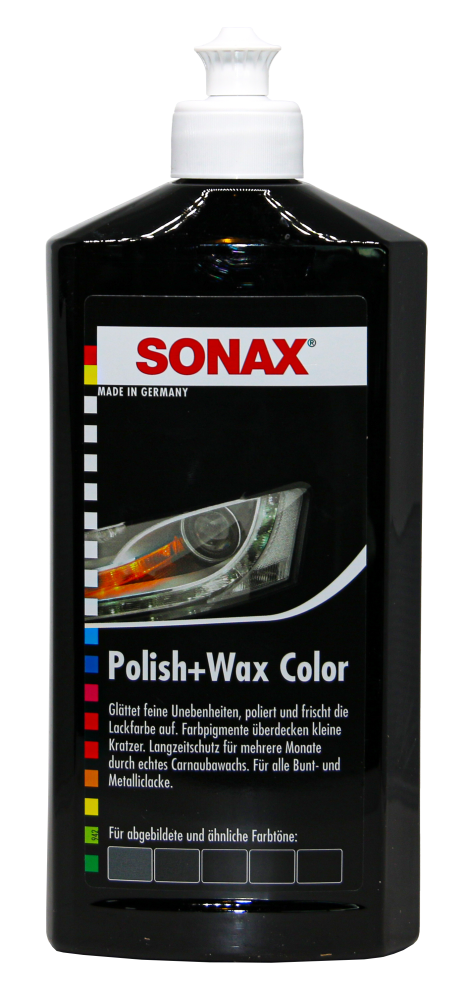 Polish & Wax på nanobasis med farve og voks. Renser, polerer og forsegler almindelig samt metal lak. Små ridser dækkes af farven samt beskytter mod korrosion.Farve optimering samt fantastisk højglans med vokspartikler.