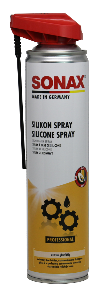 Sonax Silicone Spray smører og beskytter gummi, kunststof, træ- og metaldele. Ideel til tændingsanlæg, dørpakninger, låse m.vSilikonesprayen fra Sonax er også egnet som slipmiddel i forme og lignende.Mindsker friktionen i bevægelige dele, derfor optimal til renlig, fedtfri smøring af f.eks. skydetagsskinner, sædeskinner, kæder, lynlåse, hængsler og skuffer.