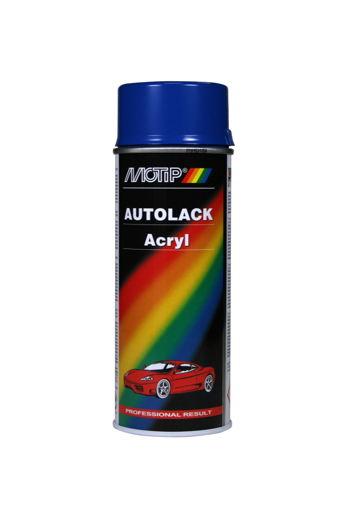 Original autolak fra Motip med farvekode #034D86. Super professionel spraymaling til den mindre skade som f.eks en ridse eller et stenslag. Maling på spray kan også bruges til lidt større skader på f.eks skærmkanter, paneler eller lakering af bil. Motips originale autolak er acrylbaseret og med samme egenskaber som professionel autolak.