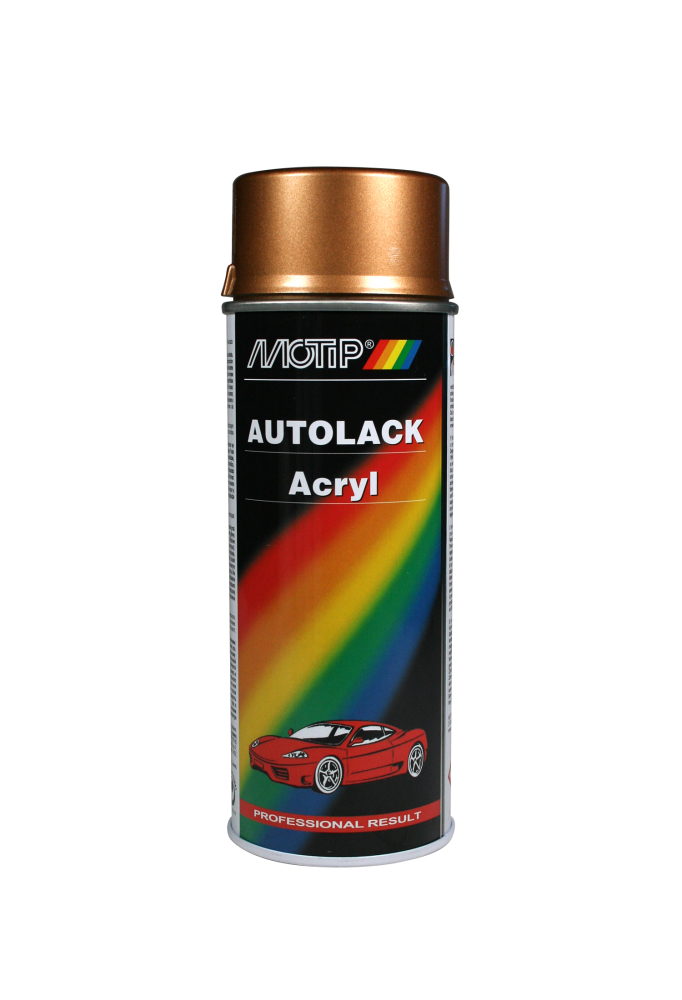 Original autolak fra Motip med farvekode #9A724E. Super professionel spraymaling til den mindre skade som f.eks en ridse eller et stenslag. Maling på spray kan også bruges til lidt større skader på f.eks skærmkanter, paneler eller lakering af bil. Motips originale autolak er acrylbaseret og med samme egenskaber som professionel autolak.