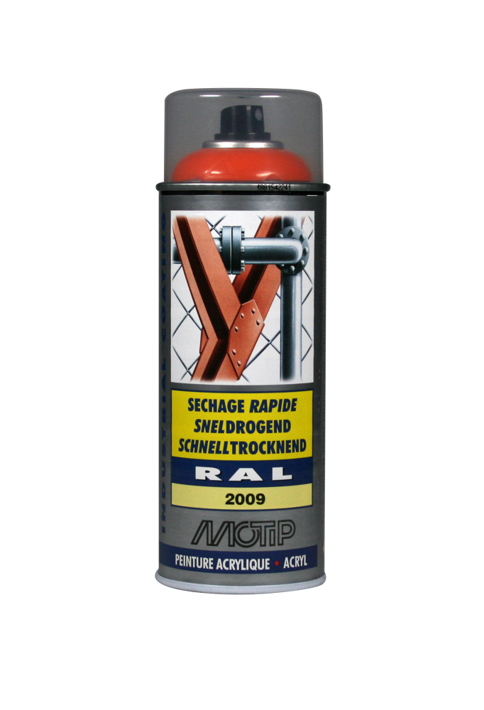 Hæfter på næsten alle overflader. Kendetegnes ved det specielle RAL farvekodesystem.Motip højglans Industri RAL 2009 farve er acrylbaseret kvalitets-spraymaling - og kan anvendes til mange formål. Industri RAL farver er meget hurtigtørrende og hærder efter blot 2 timer. Motip Højglans industrilak hærder til en ensartet og hård overflade. Spraymalingen kan bruges til de fleste malingsopgaver i hjemmet, garagen og industrien. Industri RAL spraymaling kan benyttes på både behandlede og ubehandlede overflader som bl.a. træ, metal, sten, glas, plast og kunststof.