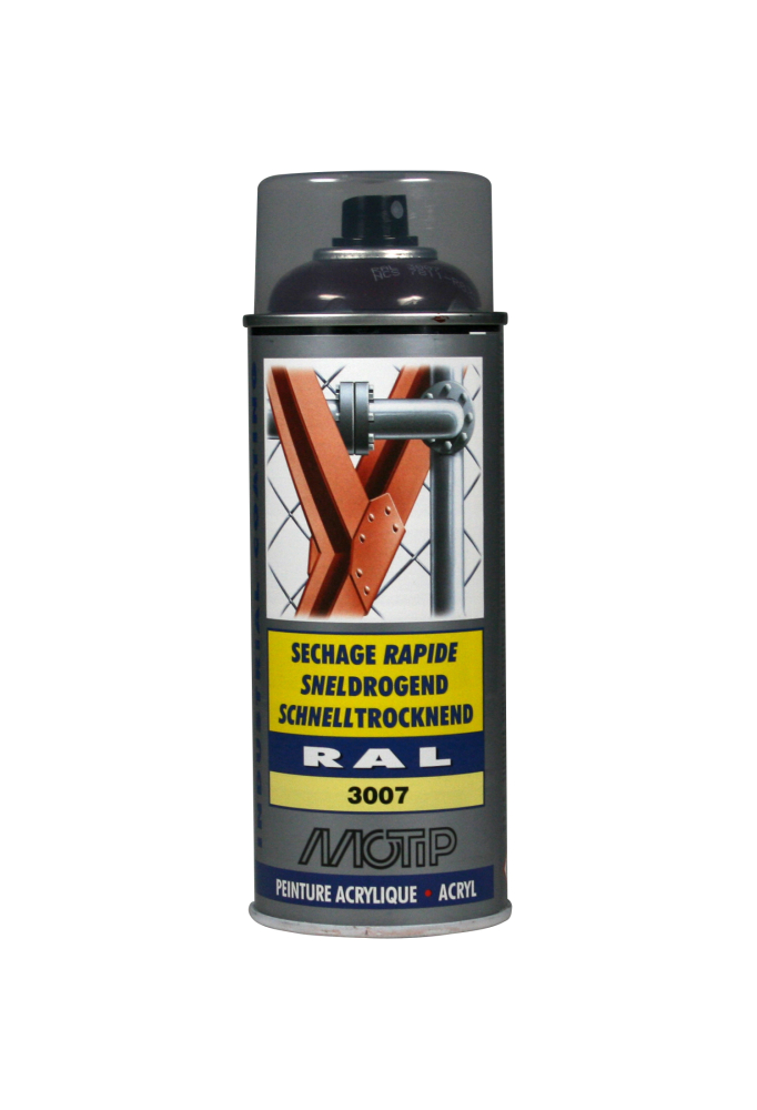 Hæfter på næsten alle overflader. Kendetegnes ved det specielle RAL farvekodesystem.Motip højglans Industri RAL 3007 farve er acrylbaseret kvalitets-spraymaling - og kan anvendes til mange formål. Industri RAL farver er meget hurtigtørrende og hærder efter blot 2 timer. Motip Højglans industrilak hærder til en ensartet og hård overflade. Spraymalingen kan bruges til de fleste malingsopgaver i hjemmet, garagen og industrien. Industri RAL spraymaling kan benyttes på både behandlede og ubehandlede overflader som bl.a. træ, metal, sten, glas, plast og kunststof.