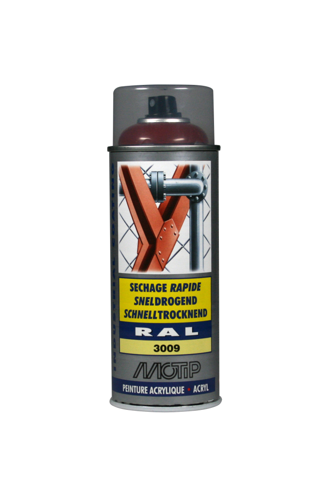 Hæfter på næsten alle overflader. Kendetegnes ved det specielle RAL farvekodesystem.Motip højglans Industri RAL 3009 farve er acrylbaseret kvalitets-spraymaling - og kan anvendes til mange formål. Industri RAL farver er meget hurtigtørrende og hærder efter blot 2 timer. Motip Højglans industrilak hærder til en ensartet og hård overflade. Spraymalingen kan bruges til de fleste malingsopgaver i hjemmet, garagen og industrien. Industri RAL spraymaling kan benyttes på både behandlede og ubehandlede overflader som bl.a. træ, metal, sten, glas, plast og kunststof.