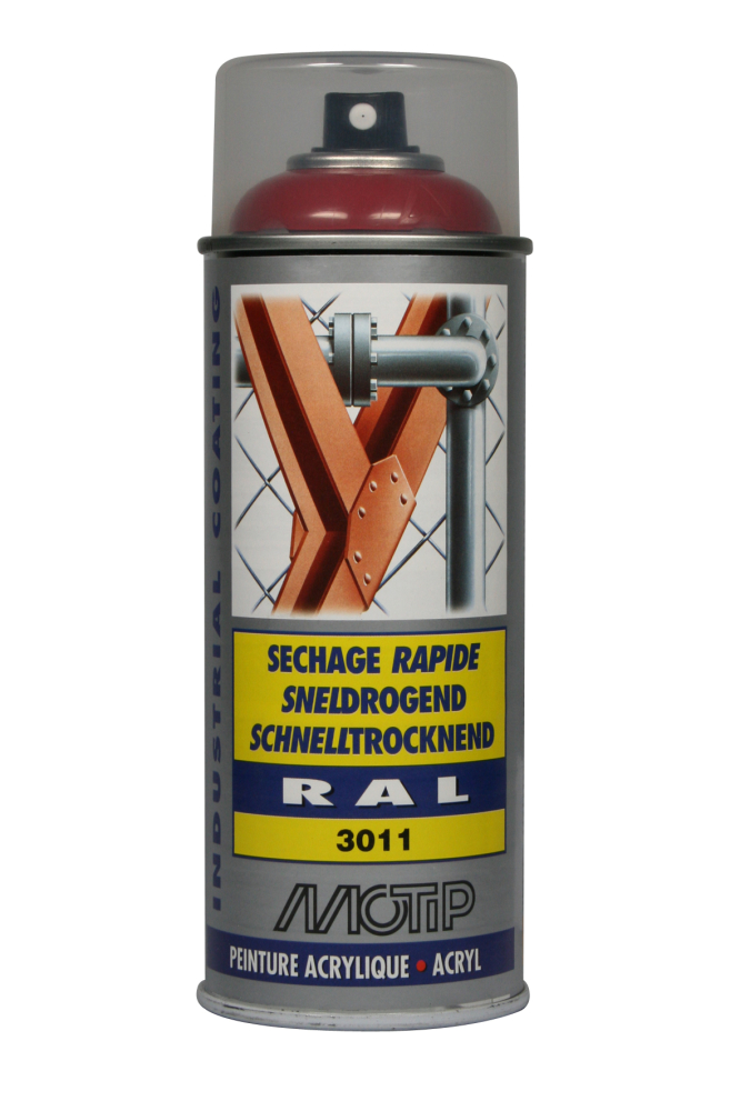 Hæfter på næsten alle overflader. Kendetegnes ved det specielle RAL farvekodesystem.Motip højglans Industri RAL 3011 farve er acrylbaseret kvalitets-spraymaling - og kan anvendes til mange formål. Industri RAL farver er meget hurtigtørrende og hærder efter blot 2 timer. Motip Højglans industrilak hærder til en ensartet og hård overflade. Spraymalingen kan bruges til de fleste malingsopgaver i hjemmet, garagen og industrien. Industri RAL spraymaling kan benyttes på både behandlede og ubehandlede overflader som bl.a. træ, metal, sten, glas, plast og kunststof.