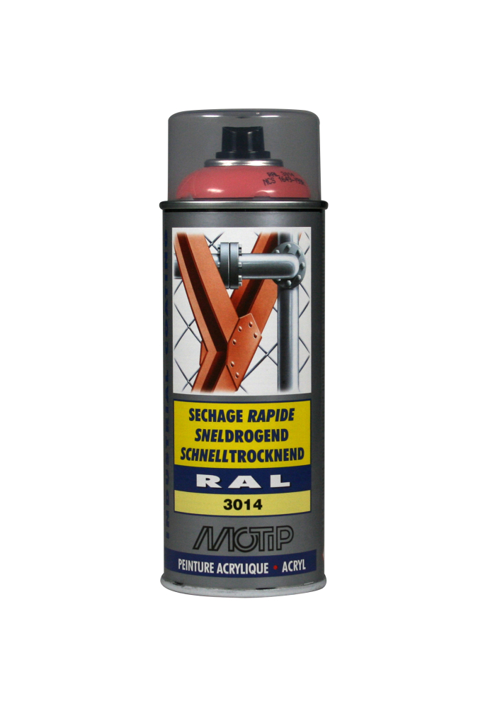 Hæfter på næsten alle overflader. Kendetegnes ved det specielle RAL farvekodesystem.Motip højglans Industri RAL 3014 farve er acrylbaseret kvalitets-spraymaling - og kan anvendes til mange formål. Industri RAL farver er meget hurtigtørrende og hærder efter blot 2 timer. Motip Højglans industrilak hærder til en ensartet og hård overflade. Spraymalingen kan bruges til de fleste malingsopgaver i hjemmet, garagen og industrien. Industri RAL spraymaling kan benyttes på både behandlede og ubehandlede overflader som bl.a. træ, metal, sten, glas, plast og kunststof.