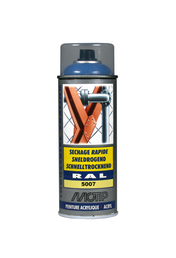 Hæfter på næsten alle overflader. Kendetegnes ved det specielle RAL farvekodesystem.Motip højglans Industri RAL 5007 farve er acrylbaseret kvalitets-spraymaling - og kan anvendes til mange formål. Industri RAL farver er meget hurtigtørrende og hærder efter blot 2 timer. Motip Højglans industrilak hærder til en ensartet og hård overflade. Spraymalingen kan bruges til de fleste malingsopgaver i hjemmet, garagen og industrien. Industri RAL spraymaling kan benyttes på både behandlede og ubehandlede overflader som bl.a. træ, metal, sten, glas, plast og kunststof.