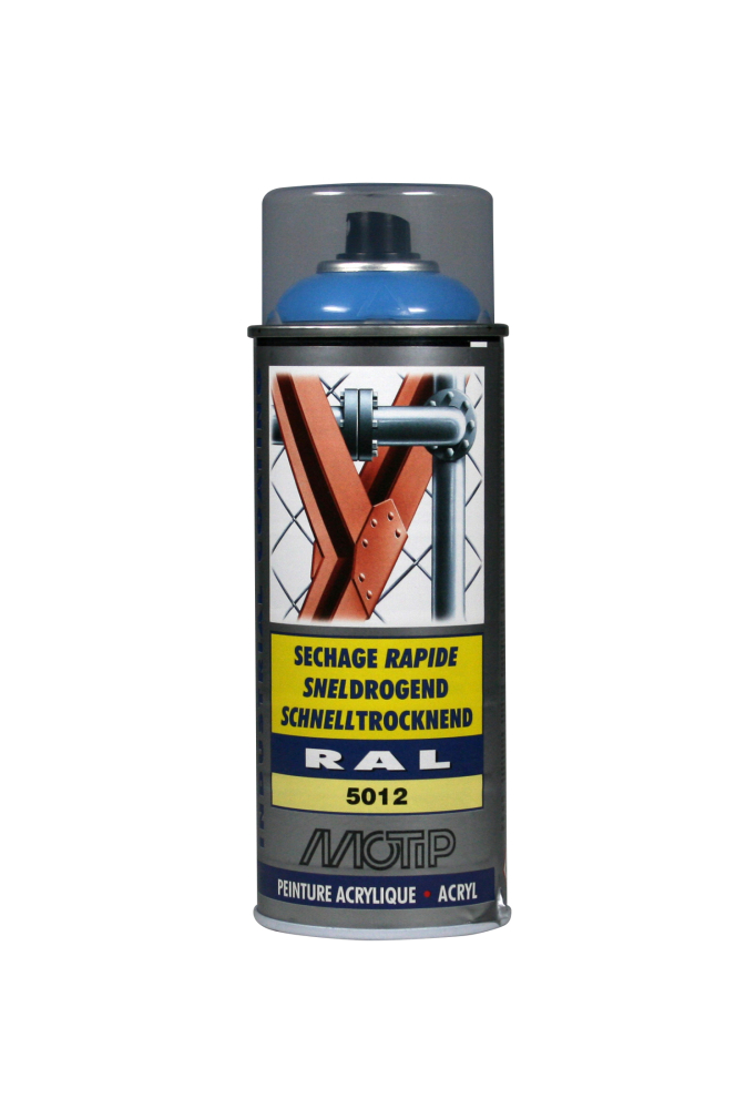 Hæfter på næsten alle overflader. Kendetegnes ved det specielle RAL farvekodesystem.Motip højglans Industri RAL 5012 farve er acrylbaseret kvalitets-spraymaling - og kan anvendes til mange formål. Industri RAL farver er meget hurtigtørrende og hærder efter blot 2 timer. Motip Højglans industrilak hærder til en ensartet og hård overflade. Spraymalingen kan bruges til de fleste malingsopgaver i hjemmet, garagen og industrien. Industri RAL spraymaling kan benyttes på både behandlede og ubehandlede overflader som bl.a. træ, metal, sten, glas, plast og kunststof.