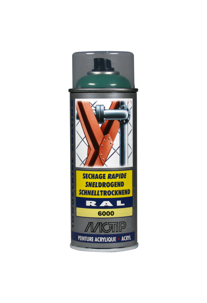 Hæfter på næsten alle overflader. Kendetegnes ved det specielle RAL farvekodesystem.Motip højglans Industri RAL 6000 farve er acrylbaseret kvalitets-spraymaling - og kan anvendes til mange formål. Industri RAL farver er meget hurtigtørrende og hærder efter blot 2 timer. Motip Højglans industrilak hærder til en ensartet og hård overflade. Spraymalingen kan bruges til de fleste malingsopgaver i hjemmet, garagen og industrien. Industri RAL spraymaling kan benyttes på både behandlede og ubehandlede overflader som bl.a. træ, metal, sten, glas, plast og kunststof.