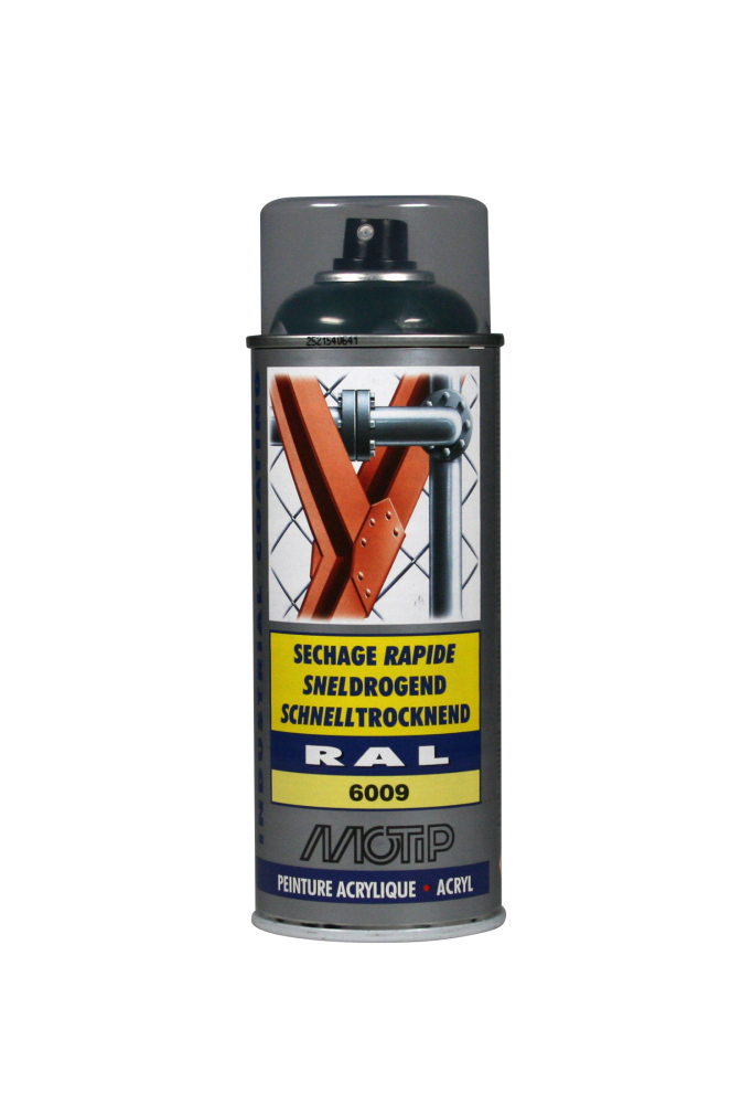 Hæfter på næsten alle overflader. Kendetegnes ved det specielle RAL farvekodesystem.Motip højglans Industri RAL 6009 farve er acrylbaseret kvalitets-spraymaling - og kan anvendes til mange formål. Industri RAL farver er meget hurtigtørrende og hærder efter blot 2 timer. Motip Højglans industrilak hærder til en ensartet og hård overflade. Spraymalingen kan bruges til de fleste malingsopgaver i hjemmet, garagen og industrien. Industri RAL spraymaling kan benyttes på både behandlede og ubehandlede overflader som bl.a. træ, metal, sten, glas, plast og kunststof.
