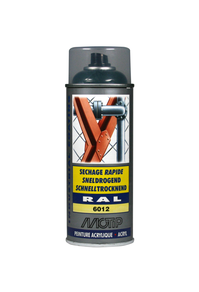 Hæfter på næsten alle overflader. Kendetegnes ved det specielle RAL farvekodesystem.Motip højglans Industri RAL 6012 farve er acrylbaseret kvalitets-spraymaling - og kan anvendes til mange formål. Industri RAL farver er meget hurtigtørrende og hærder efter blot 2 timer. Motip Højglans industrilak hærder til en ensartet og hård overflade. Spraymalingen kan bruges til de fleste malingsopgaver i hjemmet, garagen og industrien. Industri RAL spraymaling kan benyttes på både behandlede og ubehandlede overflader som bl.a. træ, metal, sten, glas, plast og kunststof.