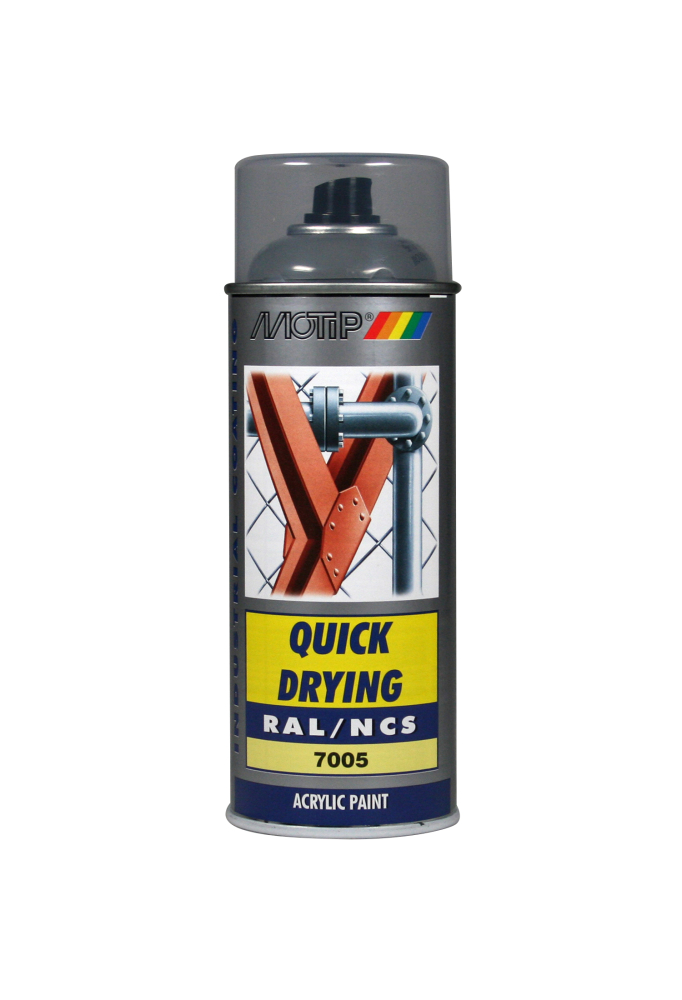 Hæfter på næsten alle overflader. Kendetegnes ved det specielle RAL farvekodesystem.Motip højglans Industri RAL 7005 farve er acrylbaseret kvalitets-spraymaling - og kan anvendes til mange formål. Industri RAL farver er meget hurtigtørrende og hærder efter blot 2 timer. Motip Højglans industrilak hærder til en ensartet og hård overflade. Spraymalingen kan bruges til de fleste malingsopgaver i hjemmet, garagen og industrien. Industri RAL spraymaling kan benyttes på både behandlede og ubehandlede overflader som bl.a. træ, metal, sten, glas, plast og kunststof.