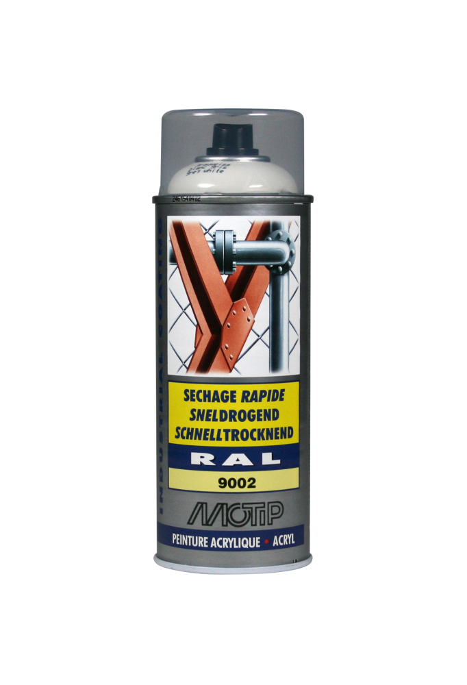 Hæfter på næsten alle overflader. Kendetegnes ved det specielle RAL farvekodesystem.Motip højglans Industri RAL 9002 farve er acrylbaseret kvalitets-spraymaling - og kan anvendes til mange formål. Industri RAL farver er meget hurtigtørrende og hærder efter blot 2 timer. Motip Højglans industrilak hærder til en ensartet og hård overflade. Spraymalingen kan bruges til de fleste malingsopgaver i hjemmet, garagen og industrien. Industri RAL spraymaling kan benyttes på både behandlede og ubehandlede overflader som bl.a. træ, metal, sten, glas, plast og kunststof.