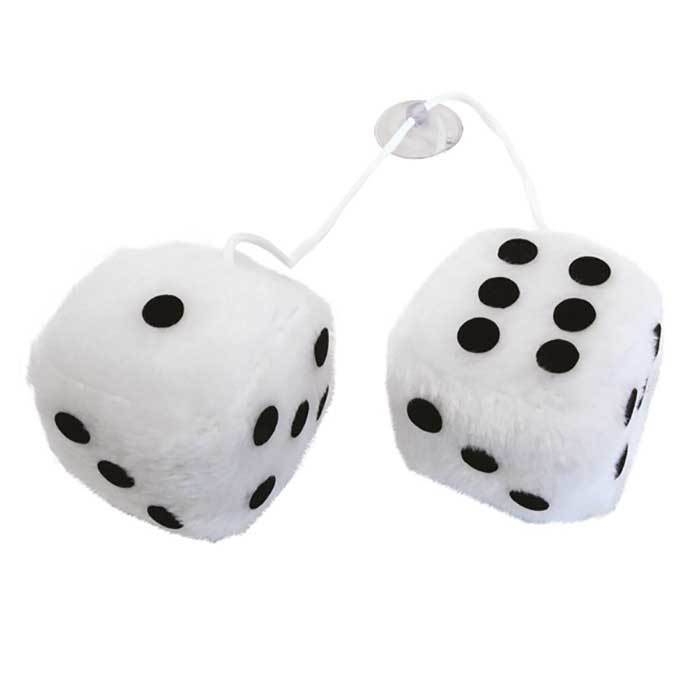 Retro terningerne er i blød plys med snor imellem til montering over bakspejlet eller via sugekoppen