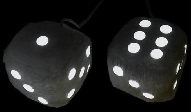 Terningerne er i blød sort plys med snor imellem til montering over bakspejlet - retro