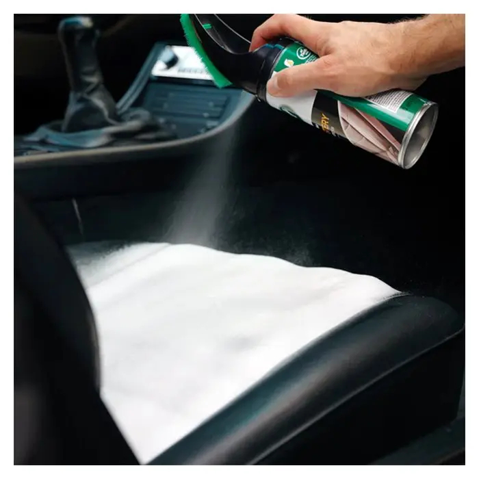 Brugervenlig påføring: spray skum på overfladen, skrub med børsten, tør efter med en klud og afslut med at støvsuge.